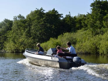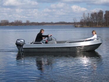 The Alufleet Open Tour Classic 444 Open Console boat has, in addition to the fixed qualities of our aluminum boats, the unique characteristics of speed, stability and maneuverability. The steering console is placed in the center of the boat, giving the driver a perfect overview.