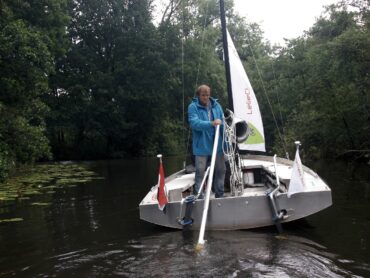 Primarely the LelieClass is a sailing boat, but can also be rowed and sculled with the aluminium oars and is, with a collapsable mast, the modern tarpaulin and a draft of 16 cm with the centreboard and rudders up, ideal for overnight hiking adventures. With long-lasting head winds in small channels, an outboard motor can be directly attached onto the double walled transom without any extra provisions.